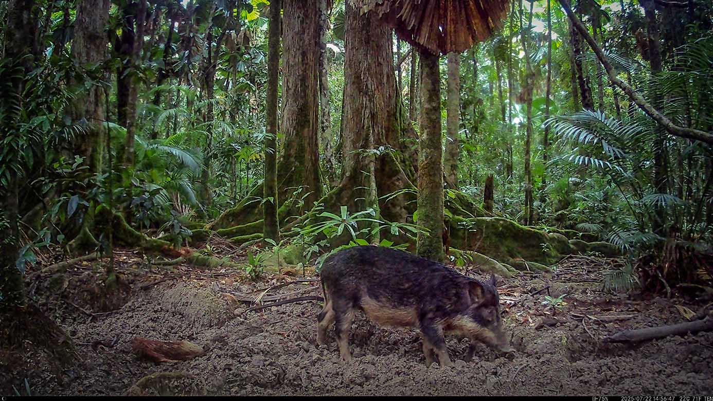 Reduced to less than 0.2% of Australia’s terrestrial landscape, cassowary habitat is also, per-unit-area, the most irreplaceable World Heritage property in the world and one of the 20 priority places in the Threatened Species Action Plan listed for improvement. With an estimated 30,000 invasive feral-pigs usurping cassowary habitat and large boars habitually pushing male cassowaries from their nests to devour eggs, cassowaries are at high risk of extinction.