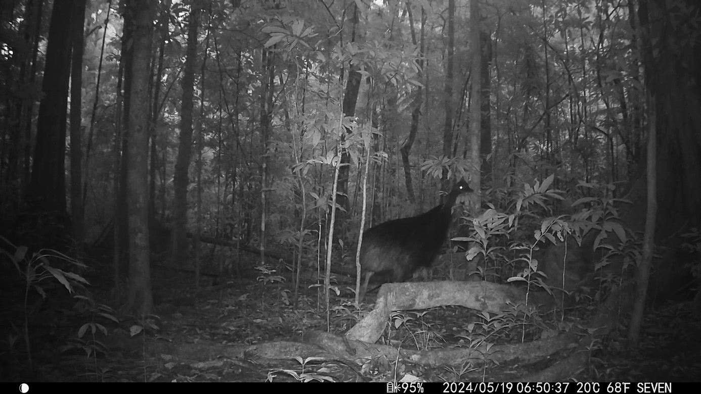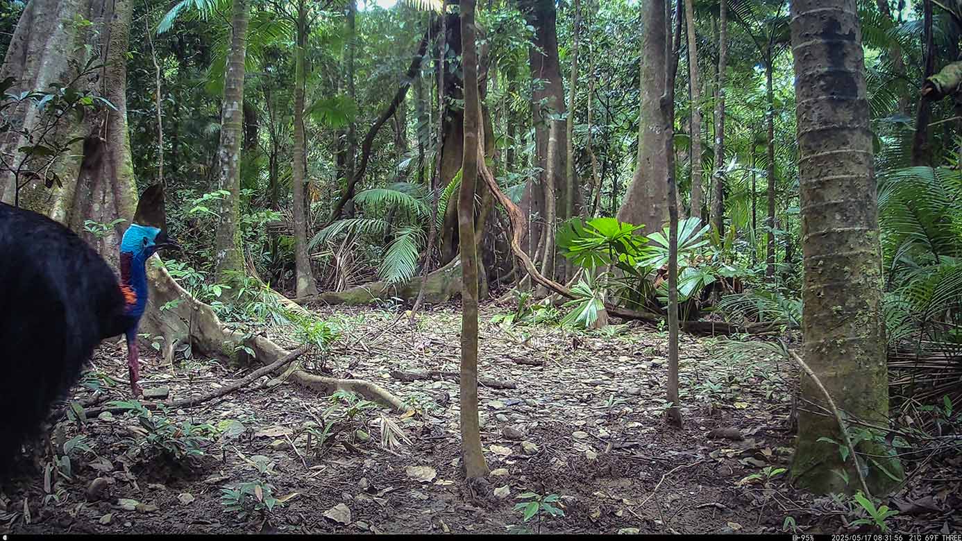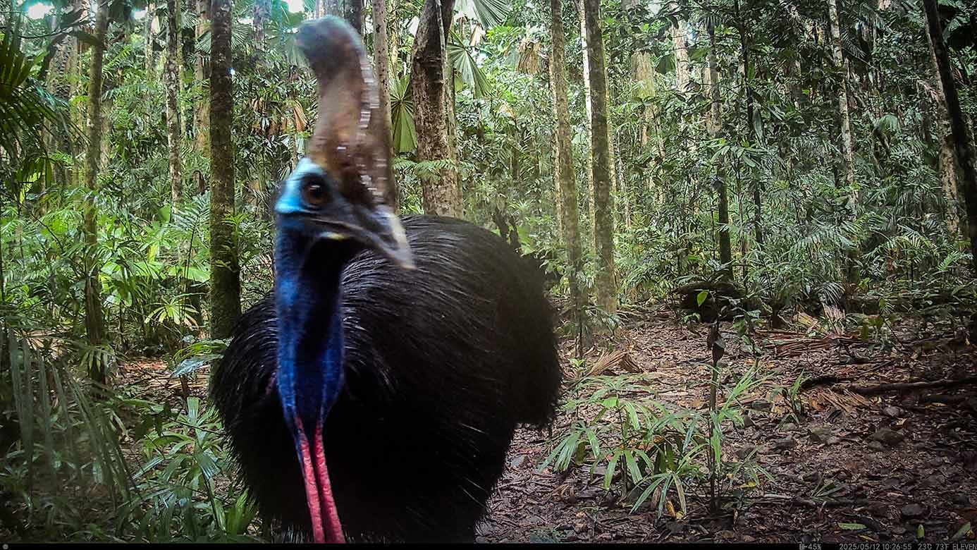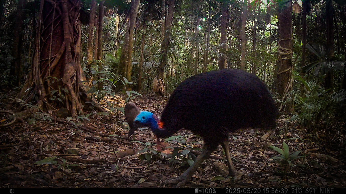 Camera Traps – May 2025 accrued 137-cassowary sightings, 37-dingoes and 119-feral pigs. Against the cumulative monthly average, cassowary numbers rose by 25%, dingoes decreased by 9% and feral-pig numbers also fell by 42%. Against May 2024, cassowary numbers soared by 1,522%, dingoes fell by 3% and feral-pigs increased by 29%.