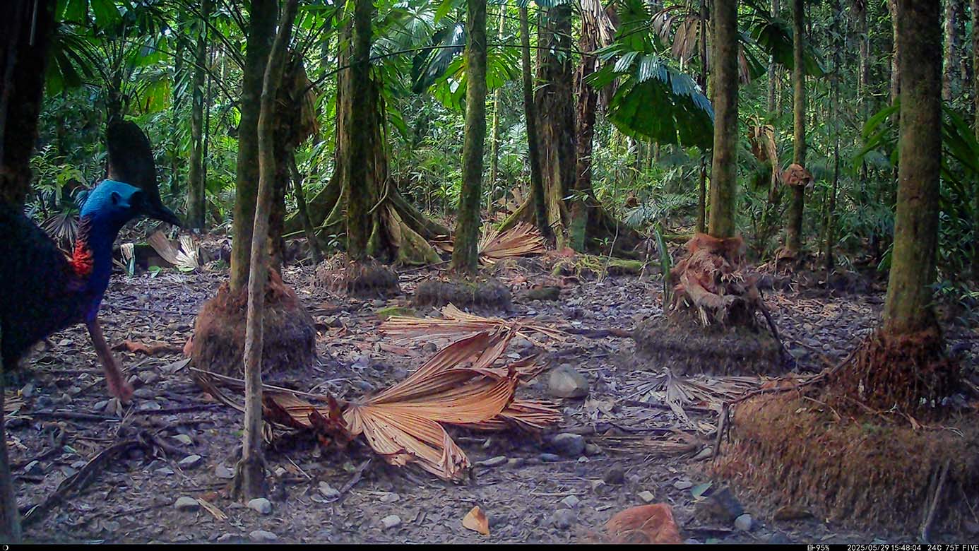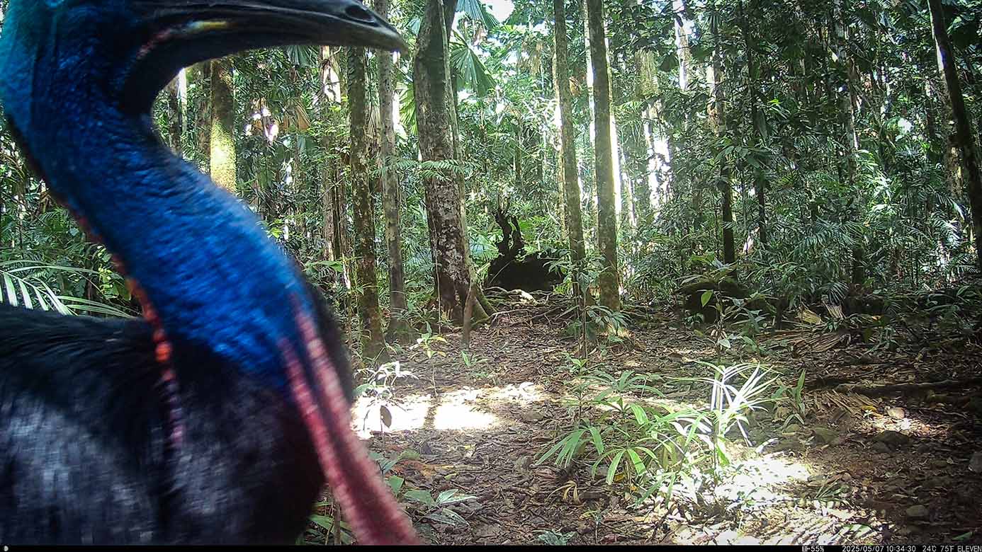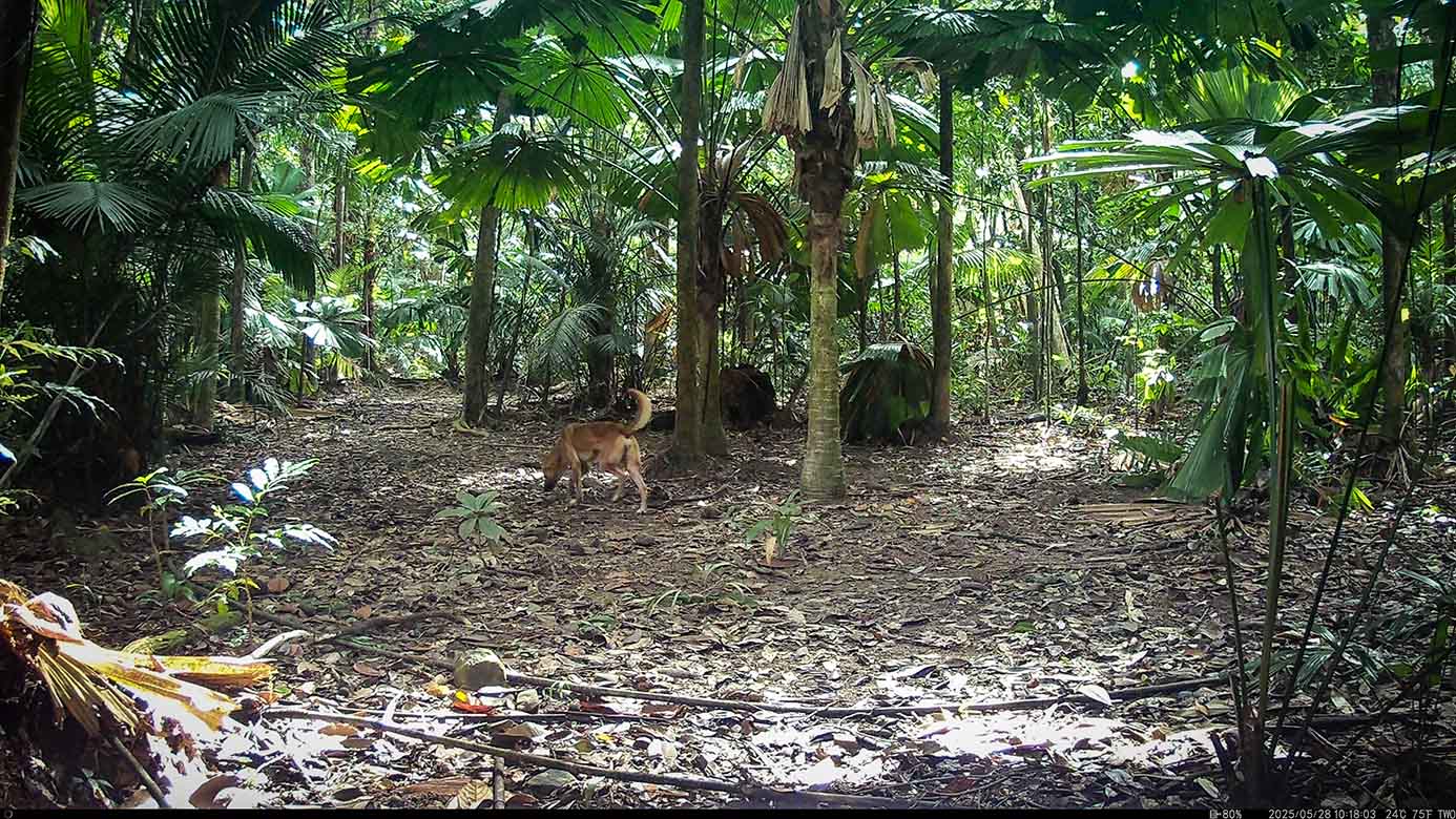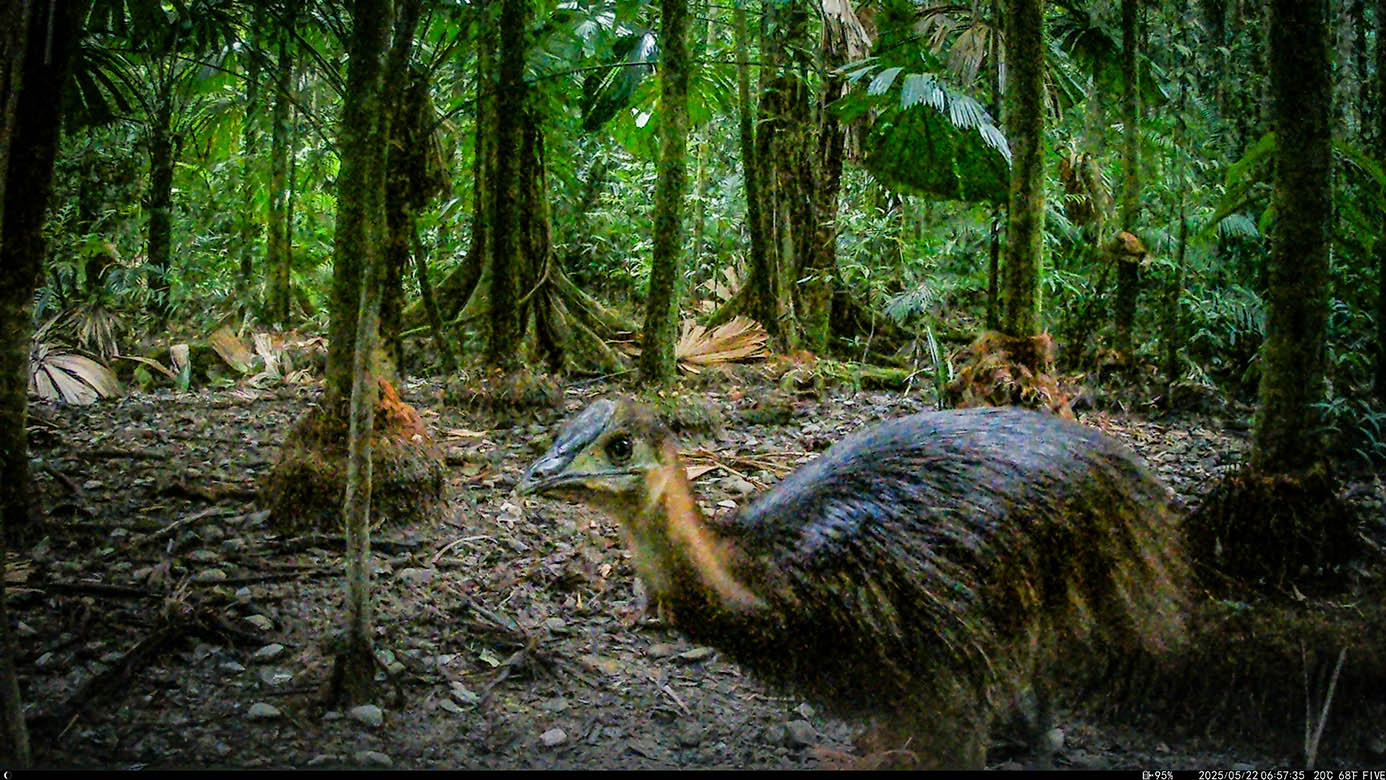 Camera Traps – May 2025 accrued 137-cassowary sightings, 37-dingoes and 119-feral pigs. Against the cumulative monthly average, cassowary numbers rose by 25%, dingoes decreased by 9% and feral-pig numbers also fell by 42%. Against May 2024, cassowary numbers soared by 1,522%, dingoes fell by 3% and feral-pigs increased by 29%.