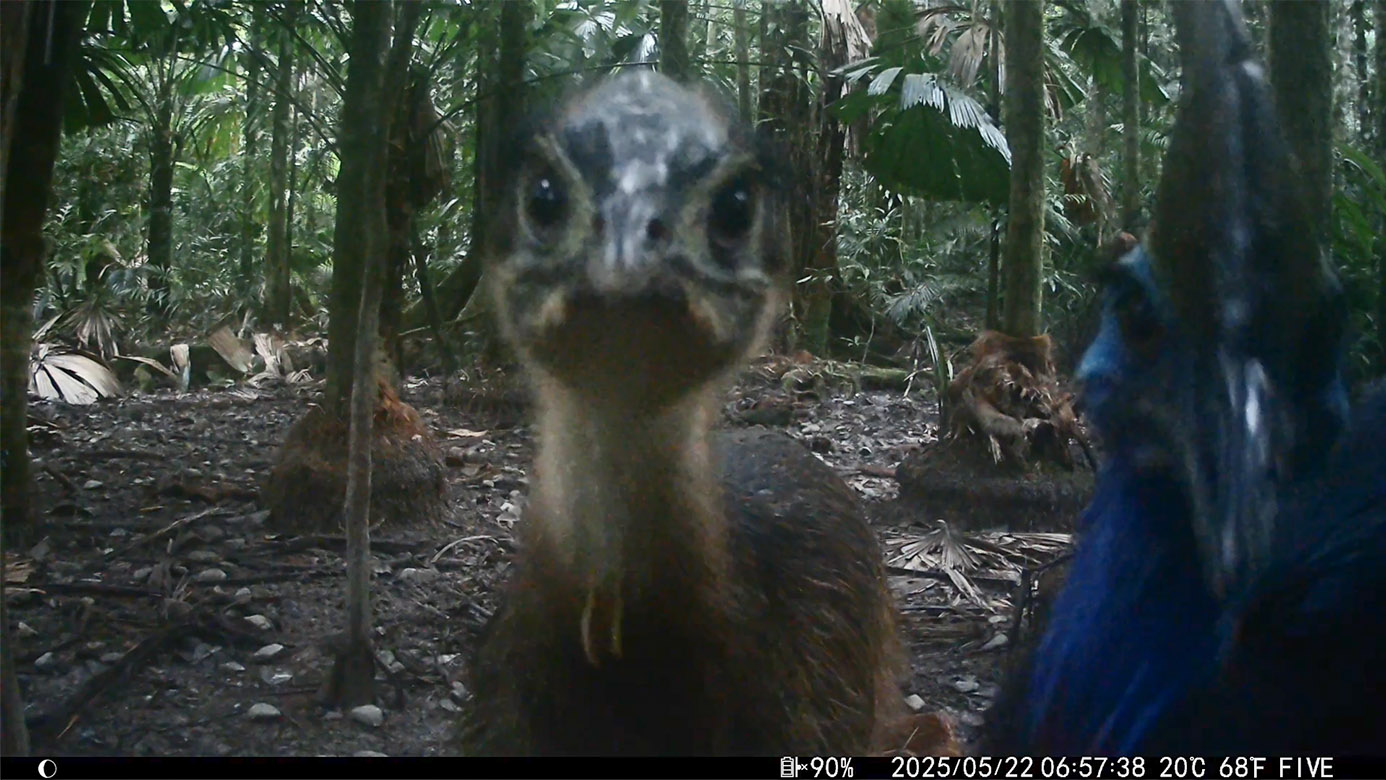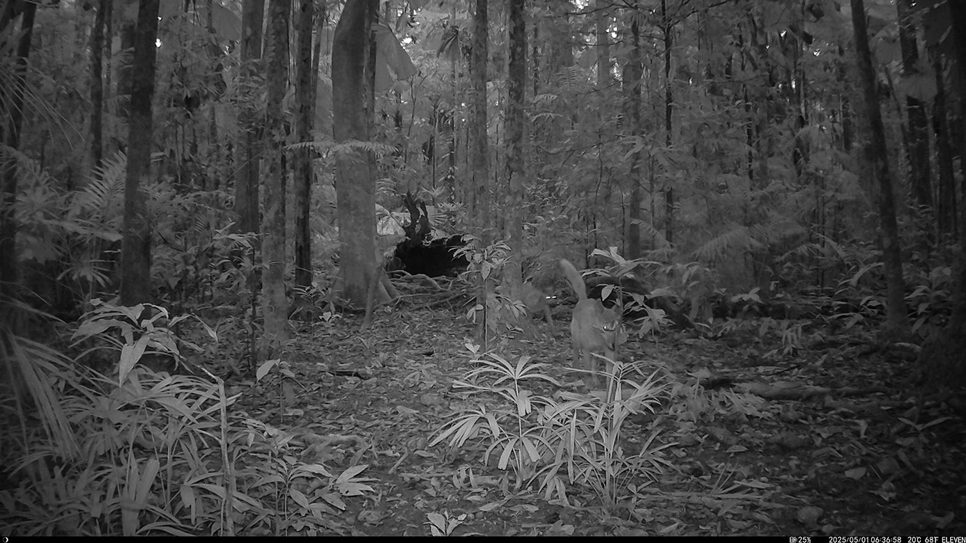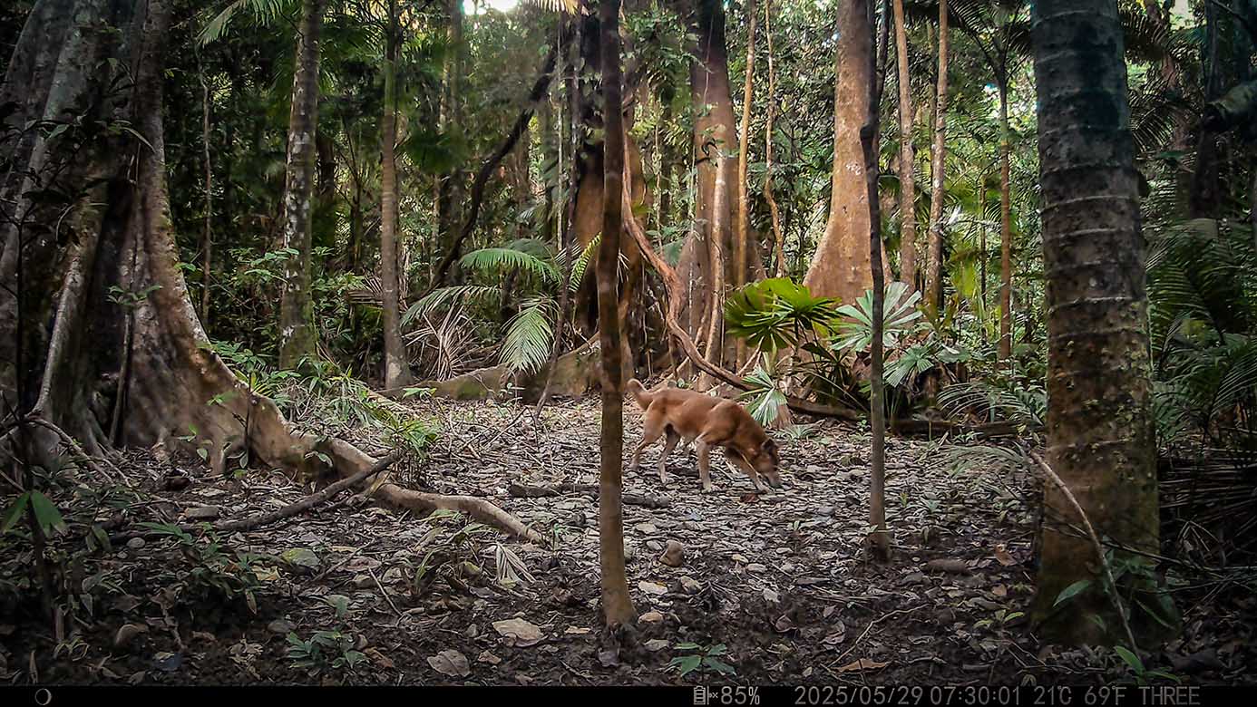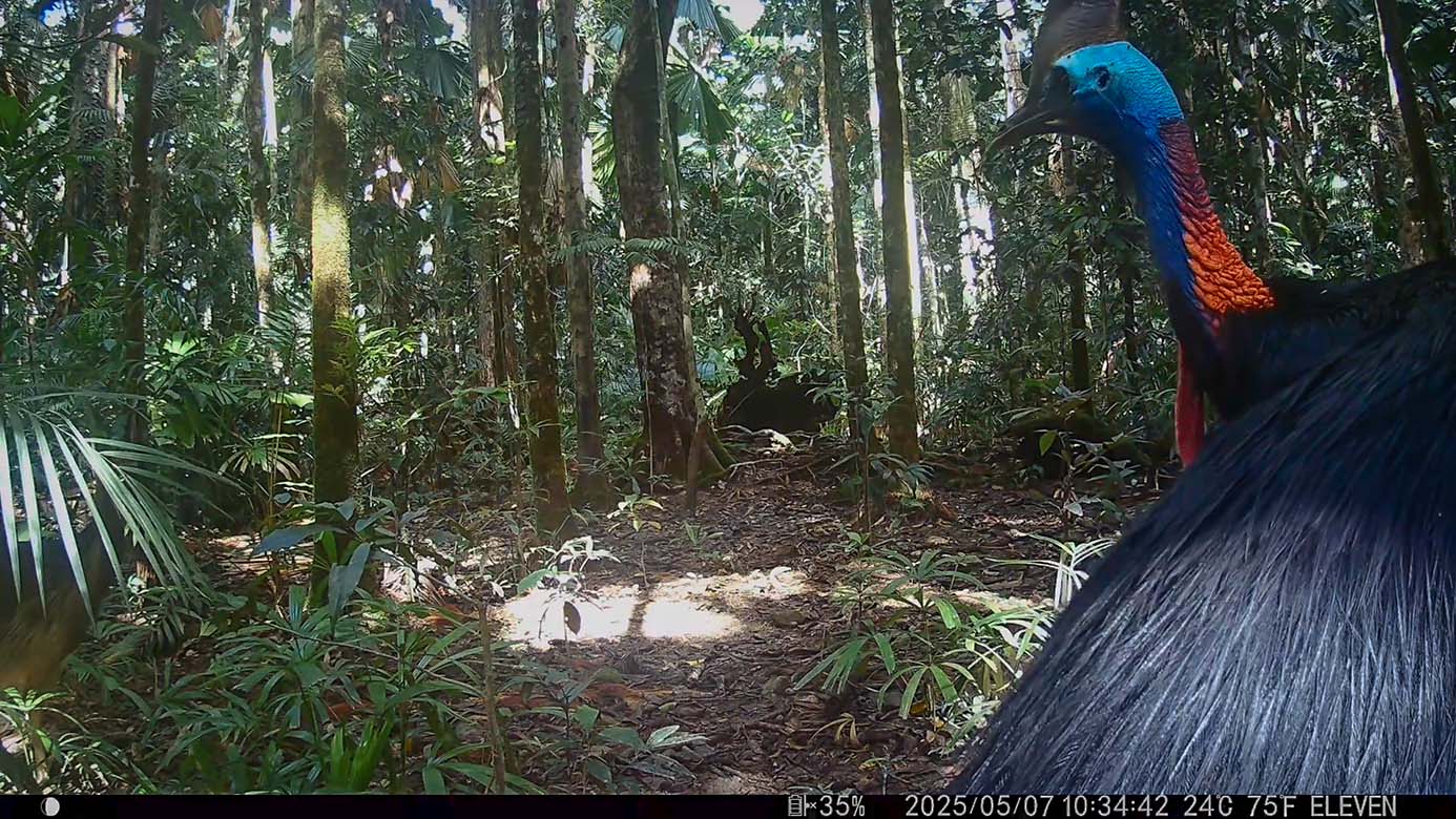 Camera Traps – May 2025 accrued 137-cassowary sightings, 37-dingoes and 119-feral pigs. Against the cumulative monthly average, cassowary numbers rose by 25%, dingoes decreased by 9% and feral-pig numbers also fell by 42%. Against May 2024, cassowary numbers soared by 1,522%, dingoes fell by 3% and feral-pigs increased by 29%.