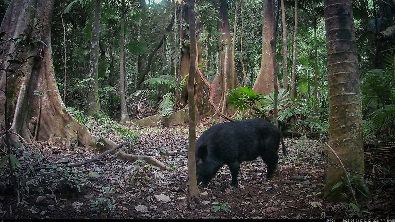 Also, when considering the plight of the Endangered Southern Cassowary, arguably the most valuable and irreplaceable species in the world (in terms of cascading extinctions that would follow its demise) and the quality of its protection within the most irreplaceable World Heritage property in the world per-unit-area, the pestilence of an estimated 28,000-feral-pigs makes a mockery of any real protection, whilst this long-term camera trap project has shown that cassowary sightings are currently declining whilst feral-pig numbers are increasing at three-times the rate.